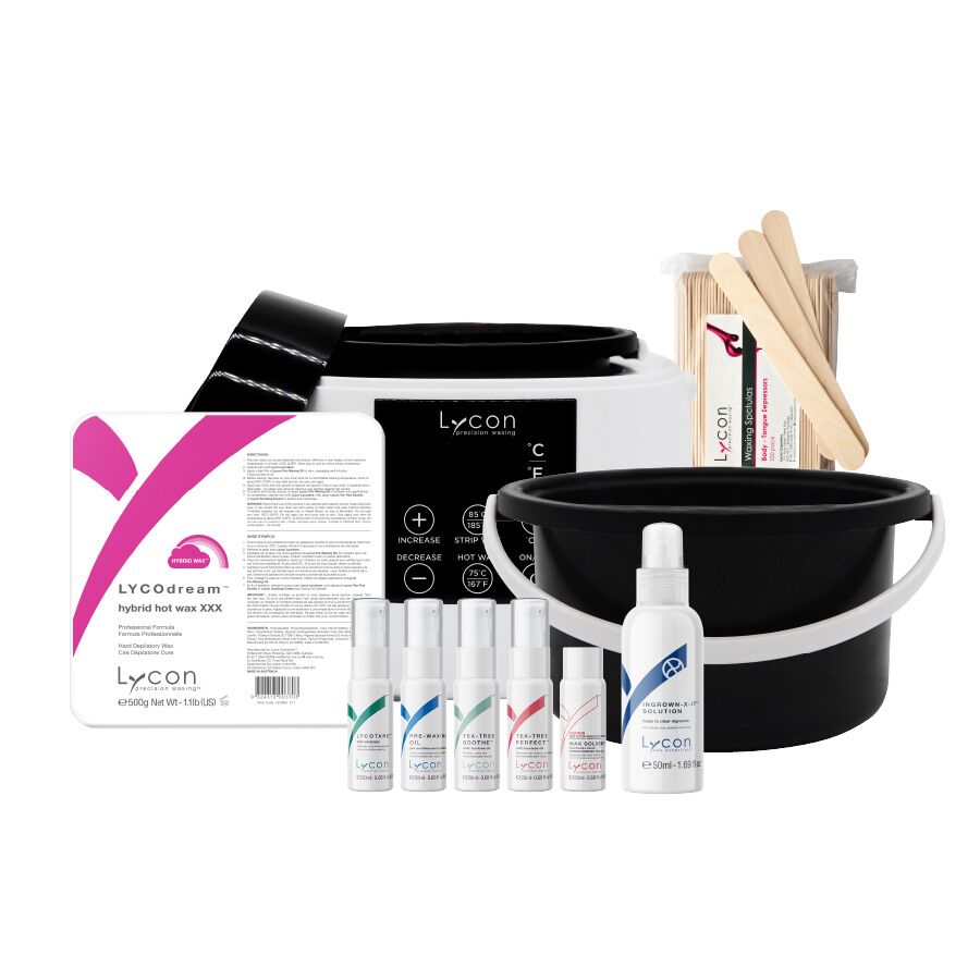 The HOT Kit features the LYCODream Hybrid Hot Wax and is perfect for waxing intimate areas including underarms, bikini line and Brazilian. LYCODream is a LYCON favorite and is excellent for all sensitive area waxing as it has added soothing ingredients including Aloe Vera and Arnica. The LYCOPro Smart Heater has a digital temperature display to keep wax temp consistent. Pre/ Post kit includes LYCOtane Cleanser, Pre-Waxing Oil, Tea Tree Soothe, Tea Tree Perfect and Wax Solvent.